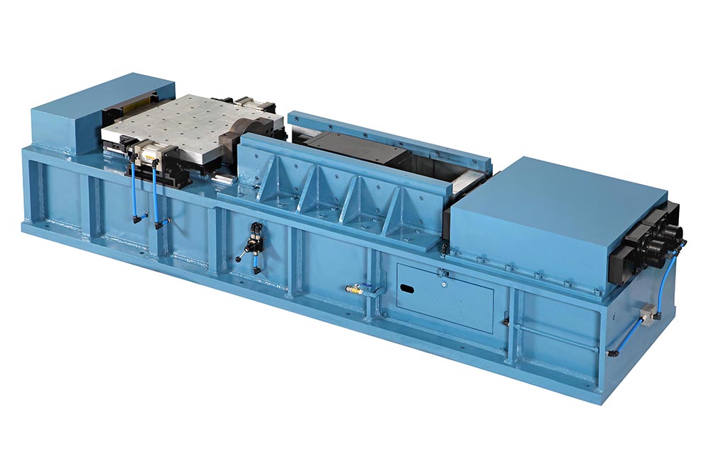 ● The shock hammer, which drives the high-speed impact shock response spectrum resonace table by shocking the cylinder, is intalled on the horizontal shock table through the horizontal guide rail. The shock hammer can be reset by reseting the cylinder.
